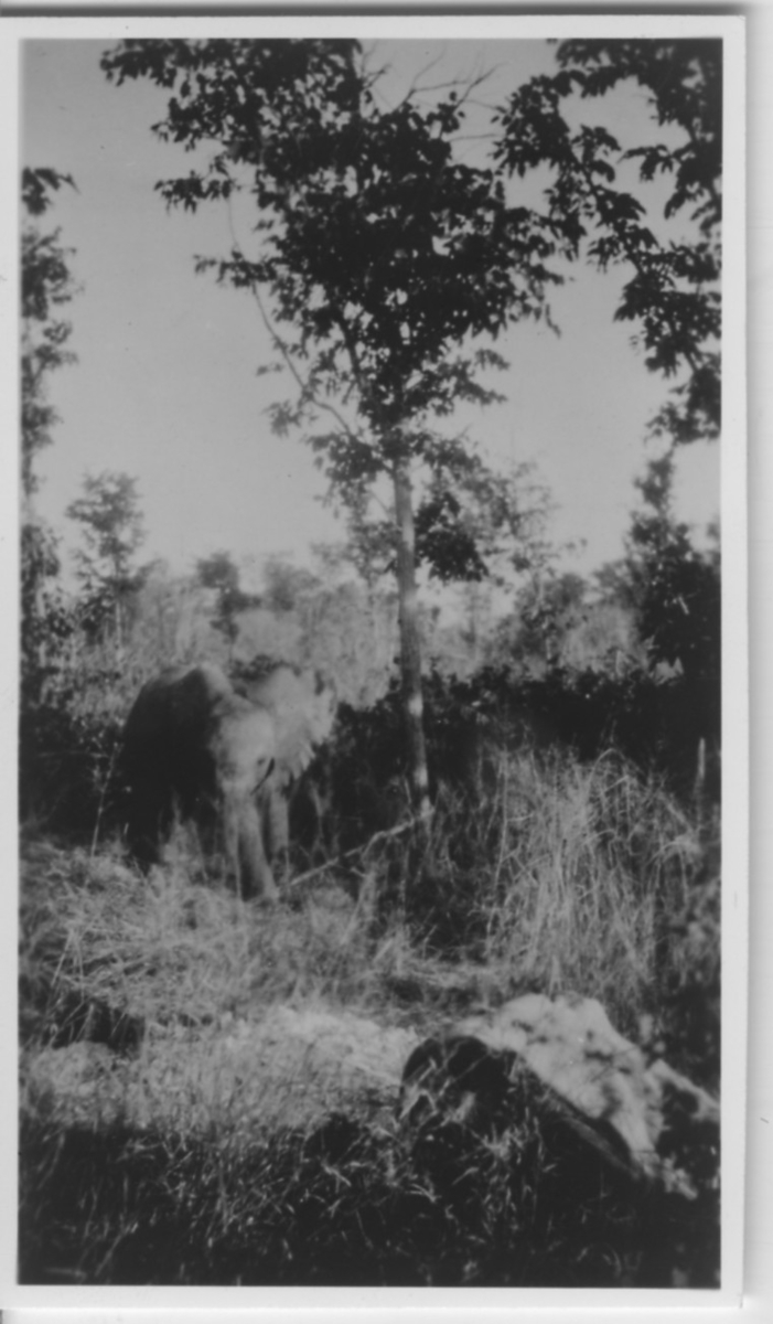 Elefantunge bunden vid ett träd.