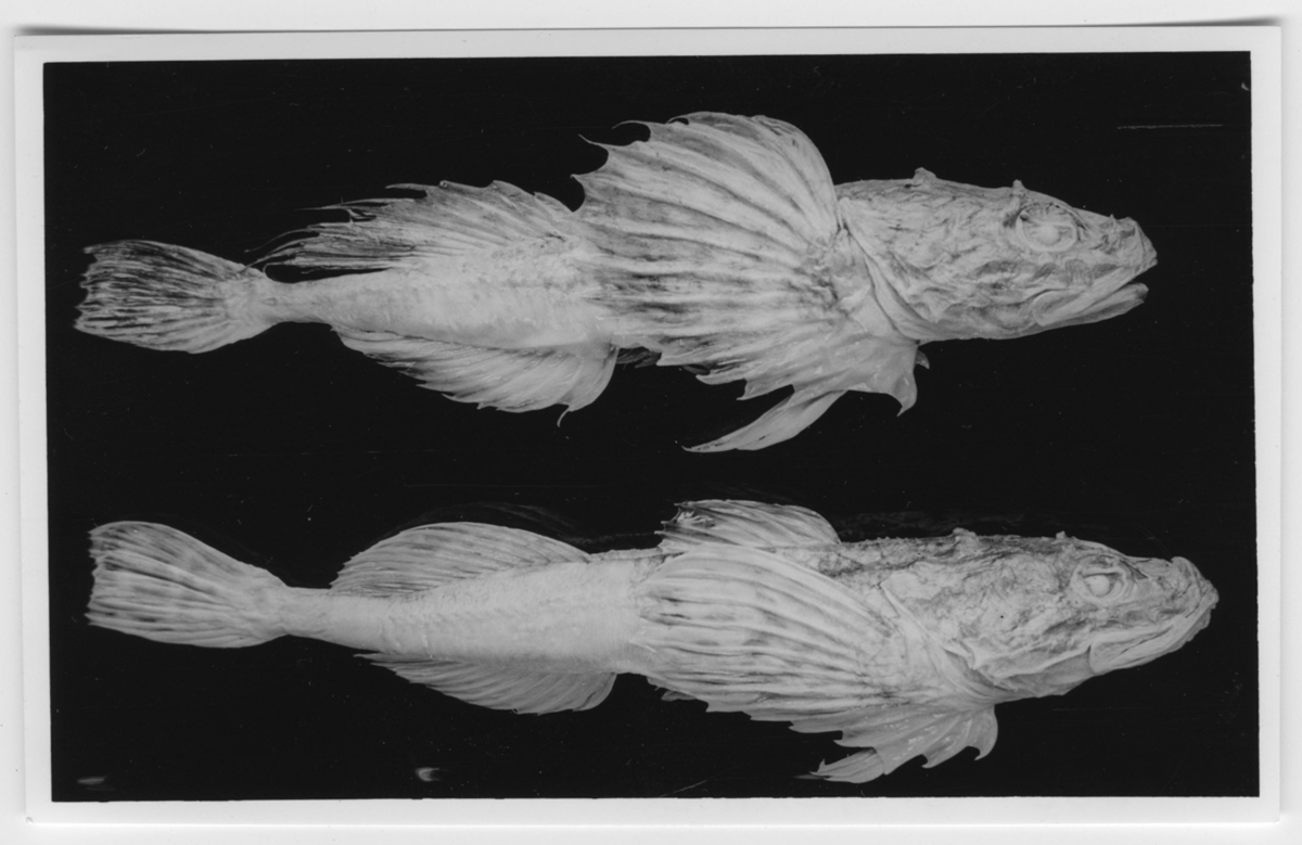 'Hornsimpa från Vättern. 2 st fiskar sedda från sidan: :: :: Pi.su. 2390, Fyndlokal: Vättern, Fynddatum: 1932-12-12. :: :: Pi.su. 2389, Fyndlokal: Vättern, Fynddatum: 1932-12-20'