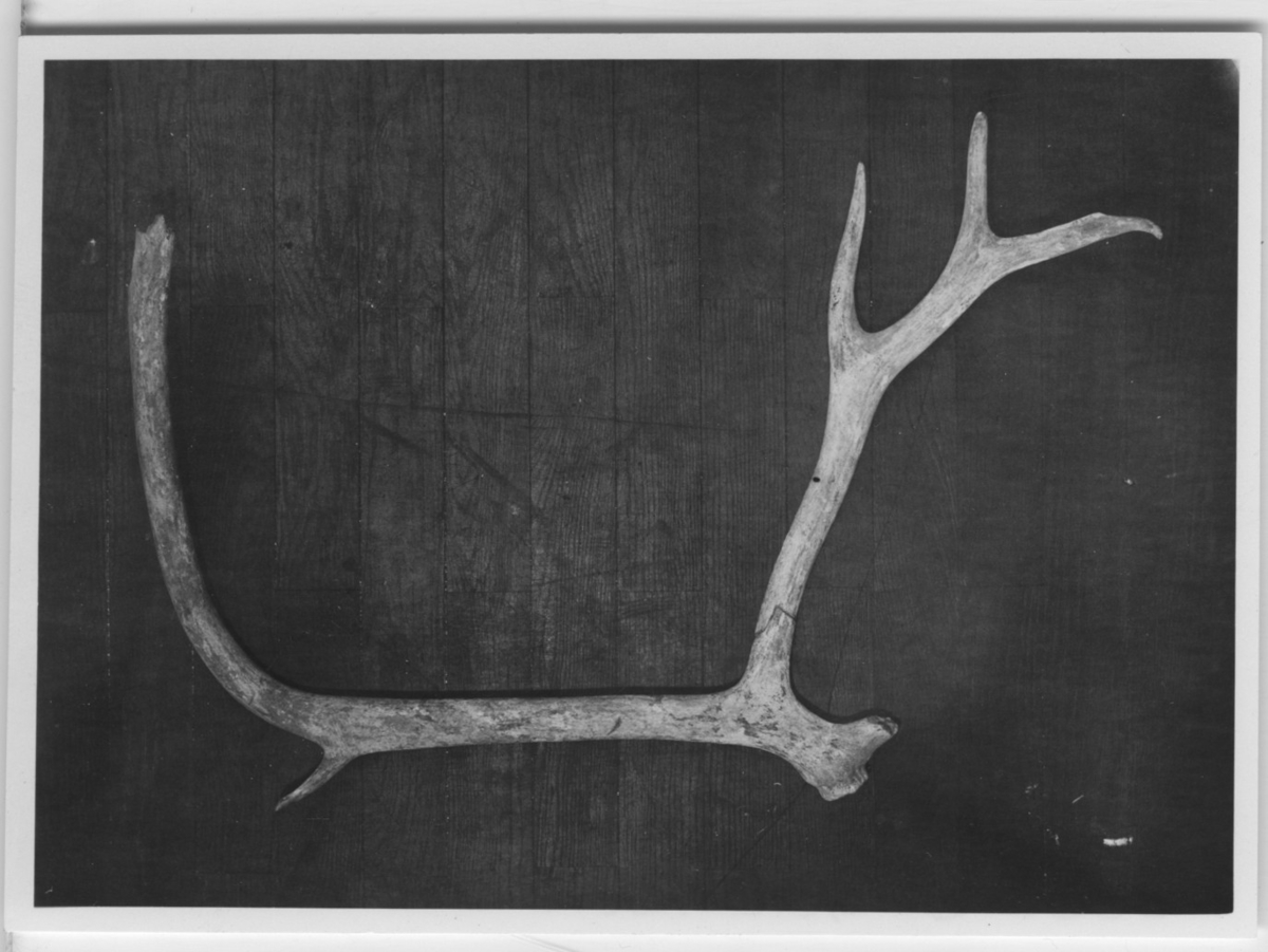 'Subfossilt vänsterhorn av ren. Fynddatum: 1935-00-00 eller 1936-00-00. :: :: Se även fotonr. 4476 och 6997:1-3.'