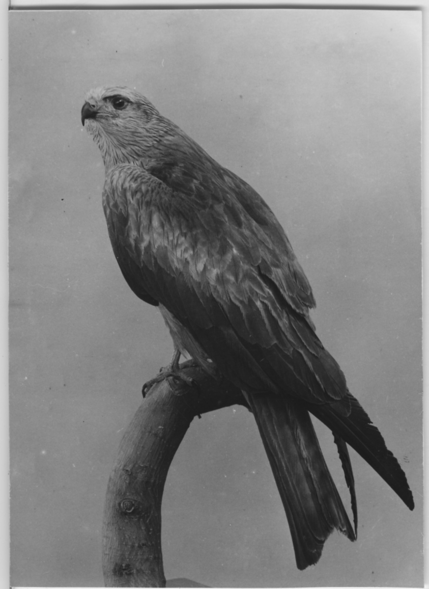'Brun glada, hane. Fynddatum: 1945-05-25. :: :: Montaget finns utställt i monterskåp nr. 237 i fågelgången på Göteborgs Naturhistoriska Museum (2008-02-04) :: :: Bilden med i Göteborgs Naturhistoriska Museums Årstryck 1946 s.12. :: :: Se fotonr. 4371:1-2.'