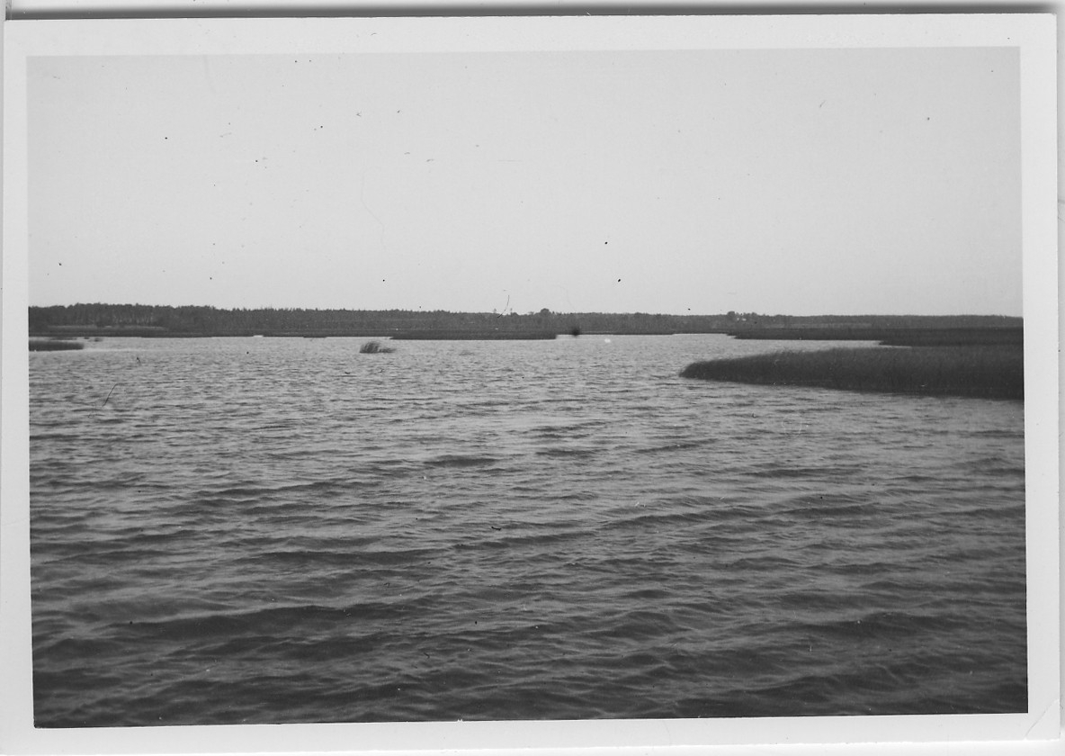 'Ingår serie 4385:1-27 från Biologiska föreningens utfärd till sjön Östen och Kinnekulle. :: :: Vy över sjön Östen med vassruggar.'