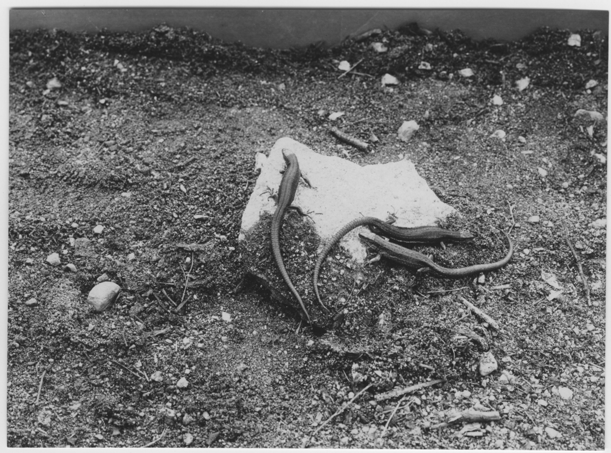'3 ödlor på stenblock. :: :: Ur ing.O.Cyréns, '' Våra ödlor'', Naturens Liv. :: :: Ingår i serie med fotonr. 4502:1-15.'