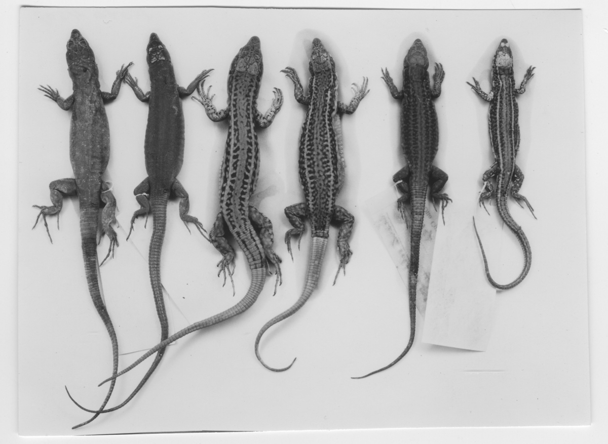 'Fotografi av 6 ödlor. :: Ur ing.O.Cyréns samlingar.'