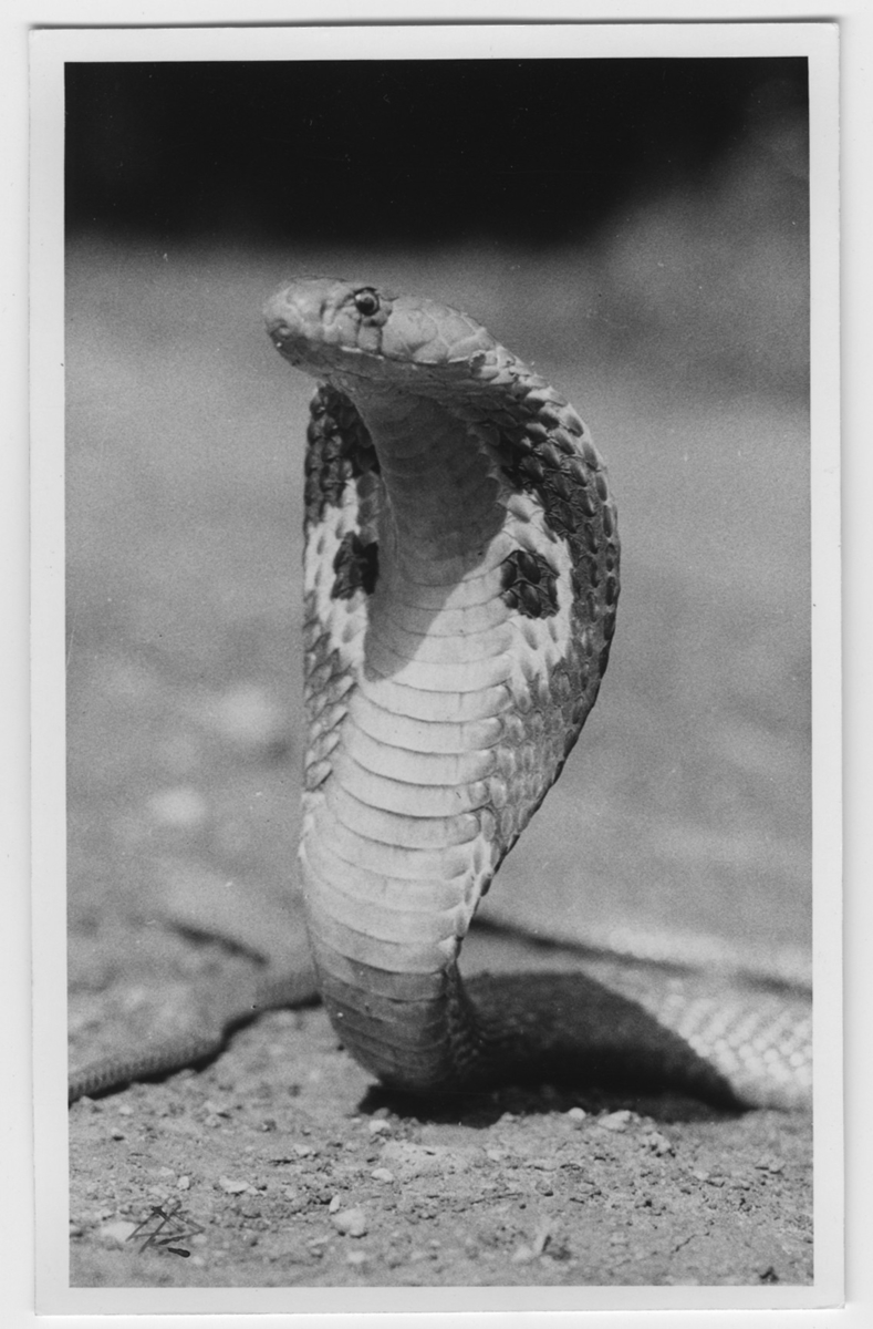 'Glasögonorm i närbild. Sedd framifrån, huvudet rest. :: :: Ingår i serie med fotonr. 4653-4657, 4659-4672.'