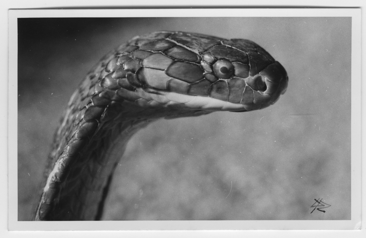 'Kungskobra i närbild, huvudbild. :: :: Ingår i serie med fotonr. 4653-4657, 4659-4672.'