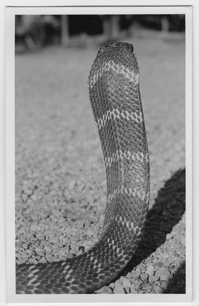 'Kungskobra i närbild., sedd bakifrån, framdelen. :: :: Ingår i serie med fotonr. 4653-4657, 4659-4672.'