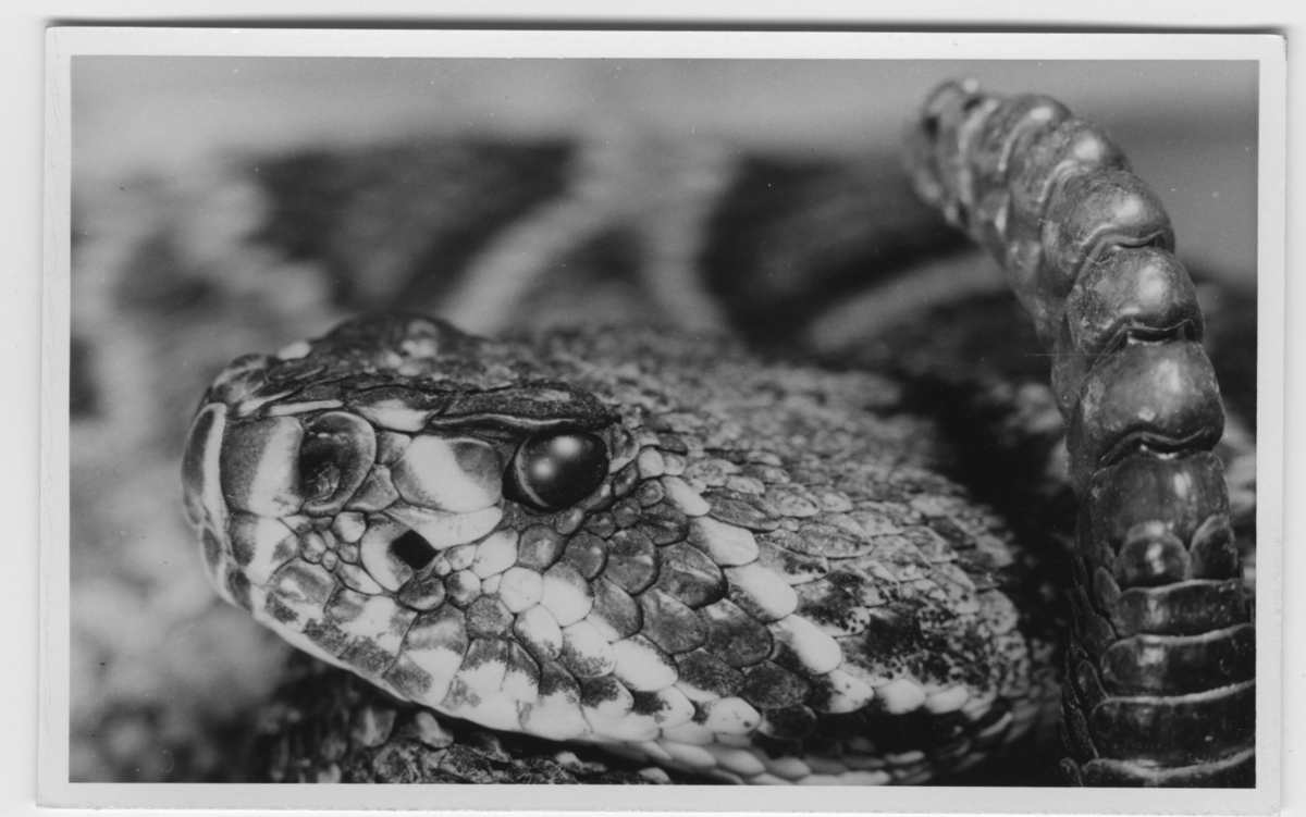 'Nordamerikansk diamantskallerorm. Närbild på huvud och skallra. :: :: Ingår i serie med fotonr. 4653-4657, 4659-4672.'