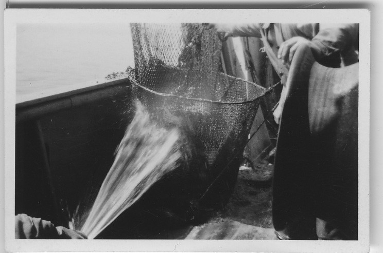 'Ombord på''Skagerack''. :: :: Närbild på en trål då vattnet rinner ut på däck. :: Ingår i serie fotonr. 4776:1-13'