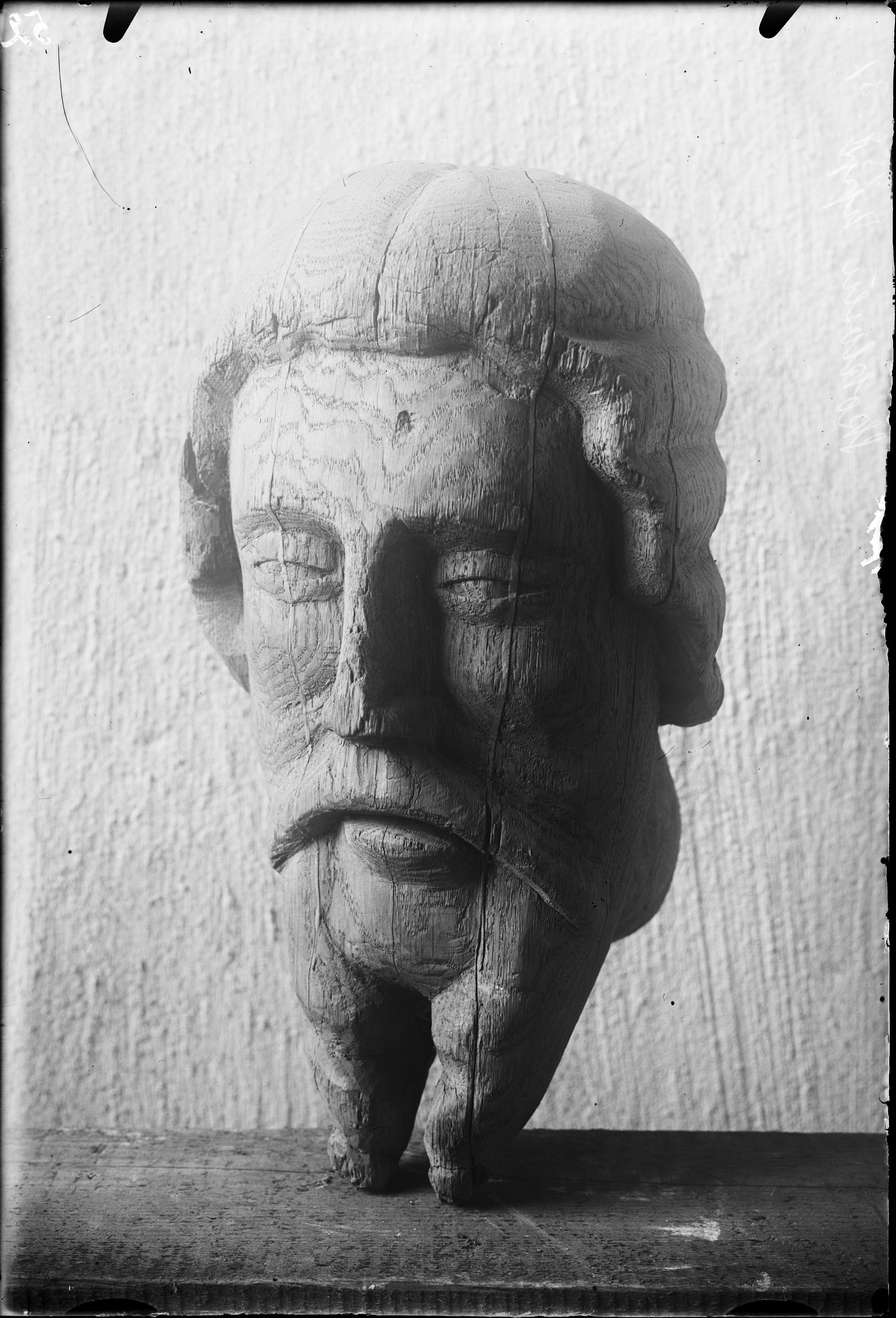 Skulptur, trä, Kristushuvud, 1300-talet.