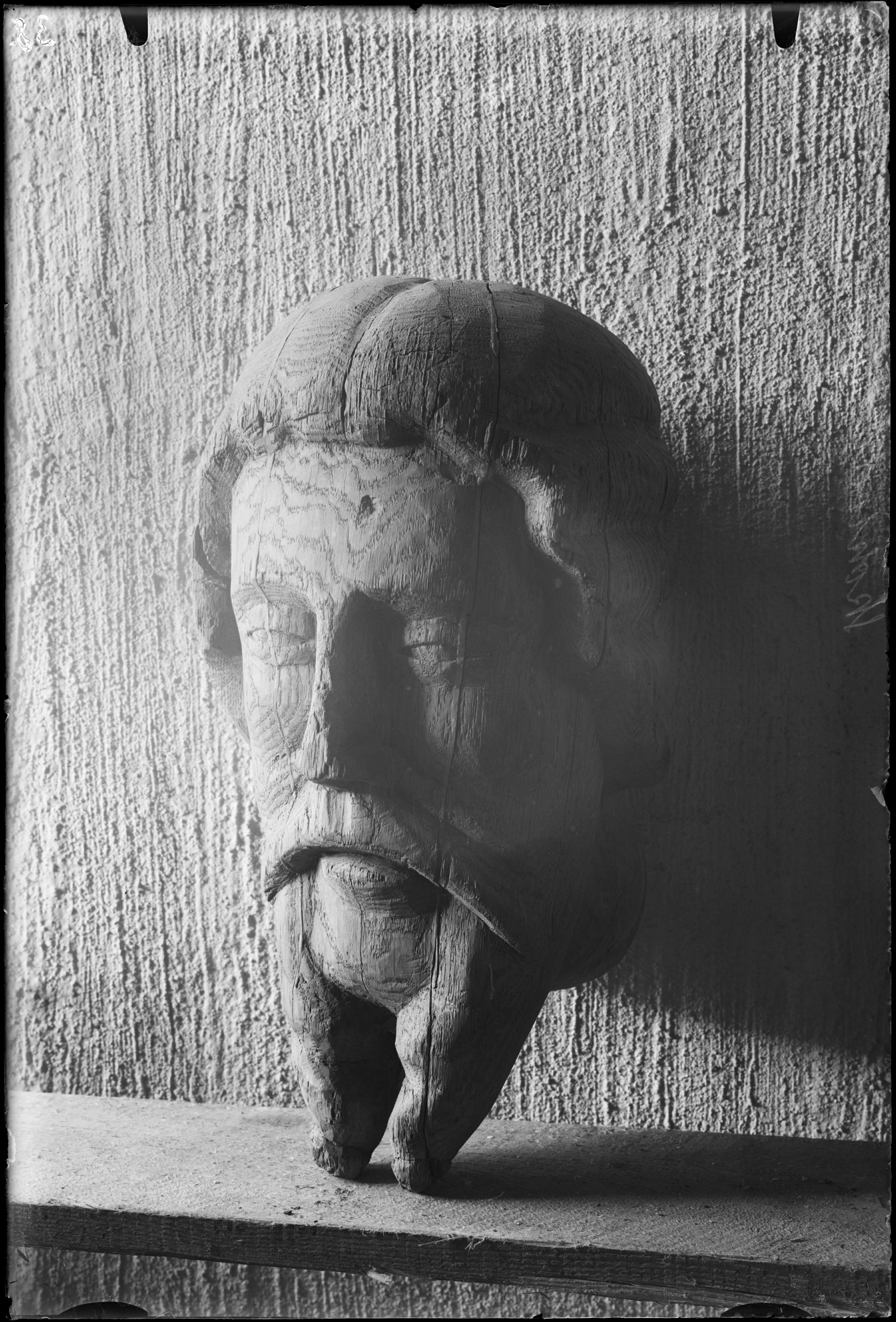 Skulptur, trä, Kristushuvud, 1300-talet.