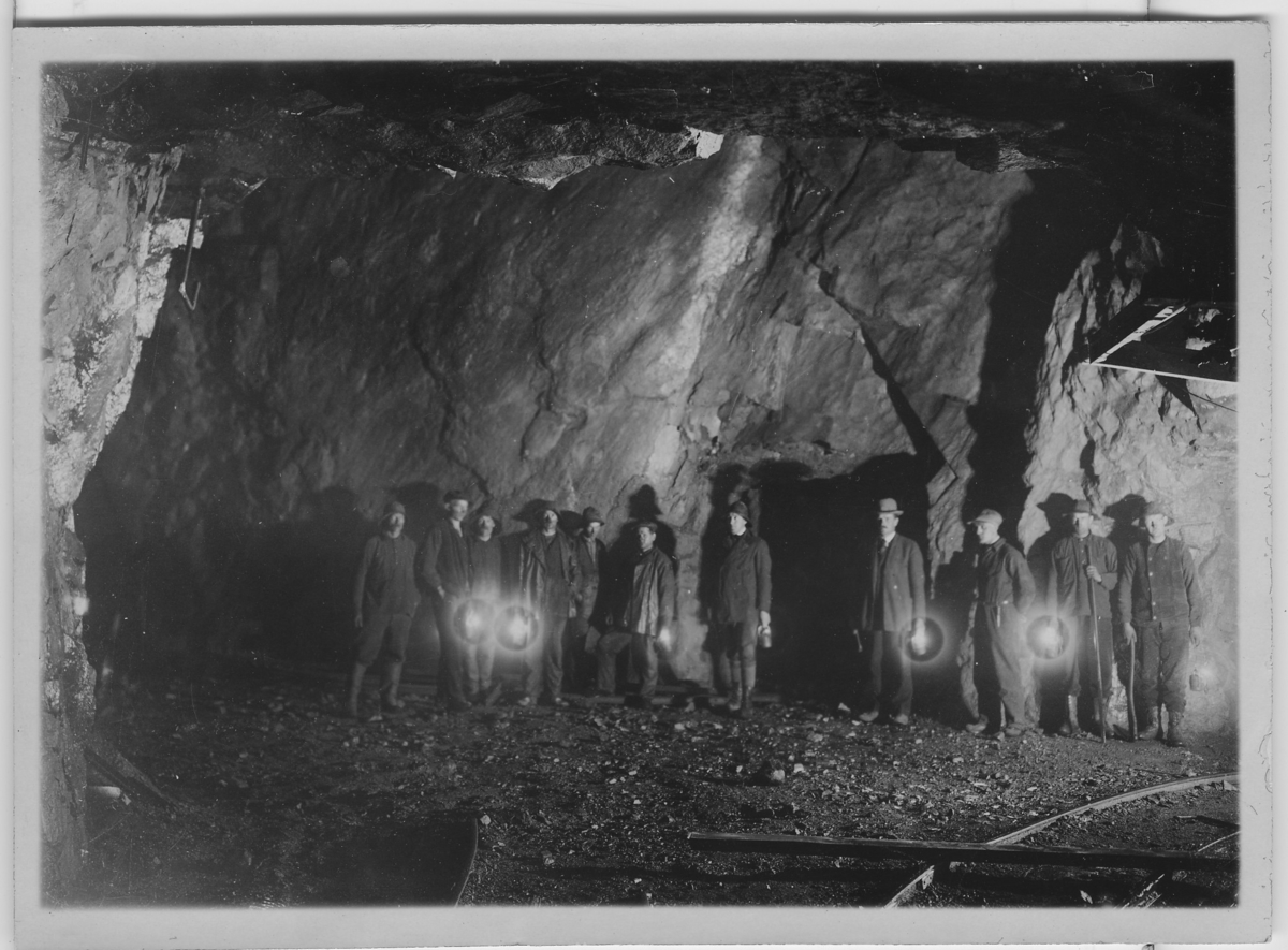 'Bolidens gruva, :: Arbetare med lampor nere i gruvan. :: Samma motiv som 4953 :: :: Serie fotonr 4931-4967.'