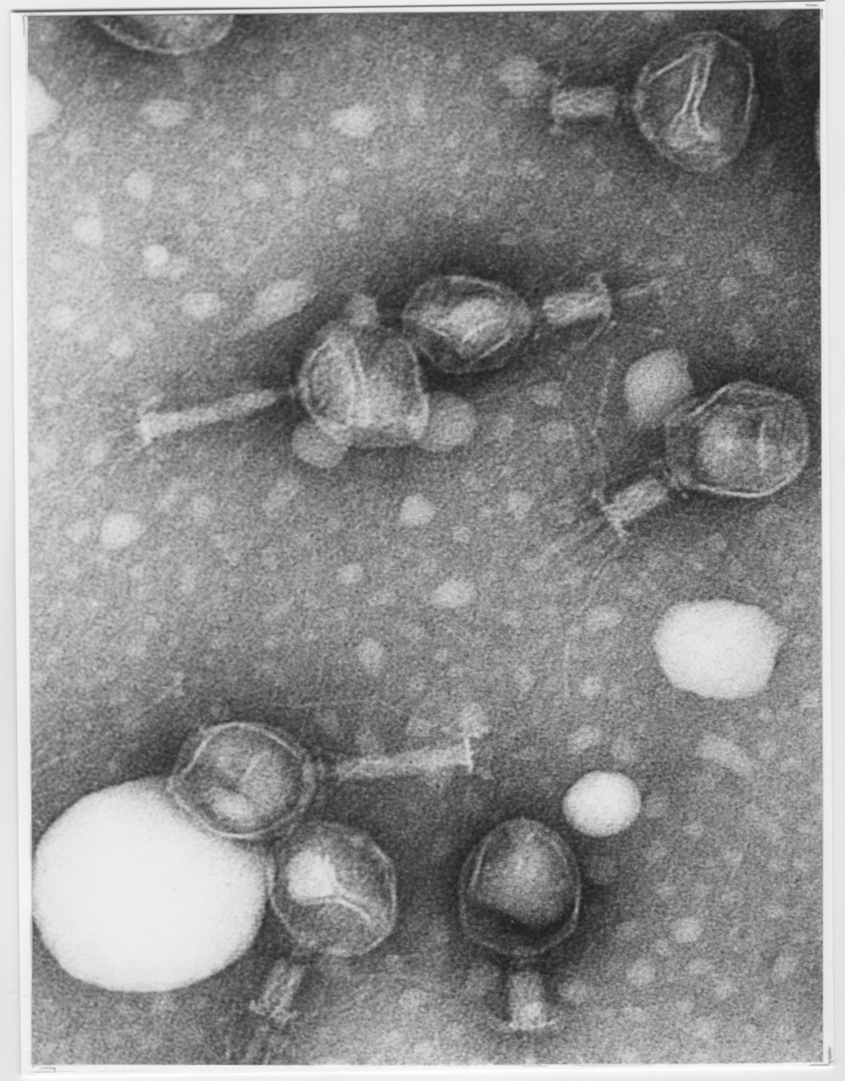 'Foton av bakteriofager i 300.000 x förstoring. Nr 9199 Gotte L. :: :: Se även fotonr. 4969:2.'