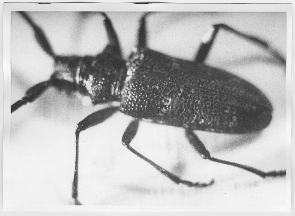 'Tallbock. Detaljbild. Kroppens längd 19mm, bredden 5 mm och antennlängd 45 mm. Fynddatum: 1970-07-31. :: :: Se även fotonr. 5095:1.'