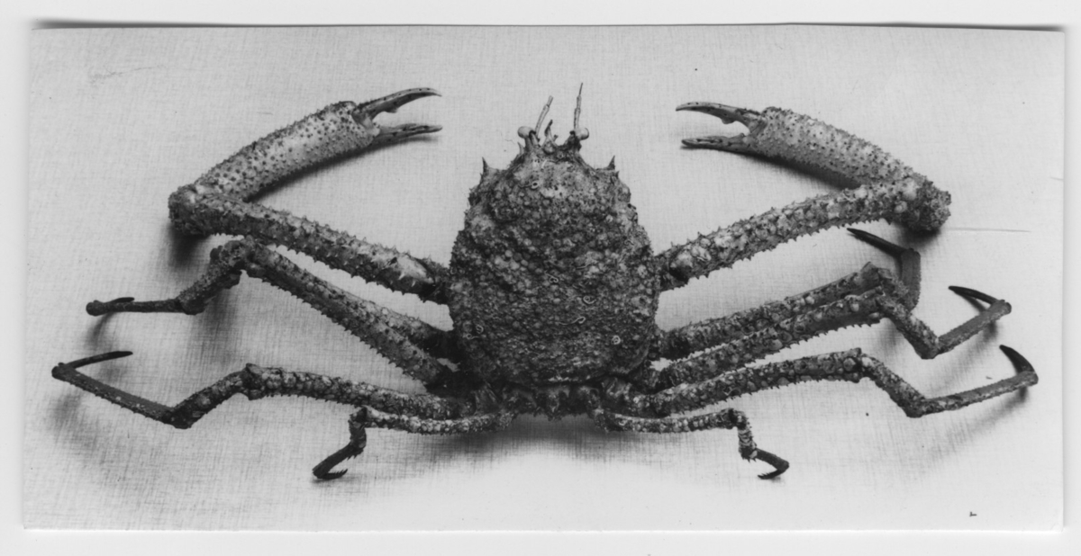 'Bilder till artikel om häxkrabba: :: :: Krabba i närbild, sedd från ovansidan. :: :: Ingår i serie med fotonr. 5100:1-4.'