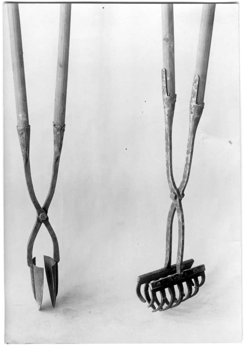 'Närbild på 2 redskap använda vis flodpärlfiske. :: :: Ingår i serie med fotonr. 5117:1-7.'