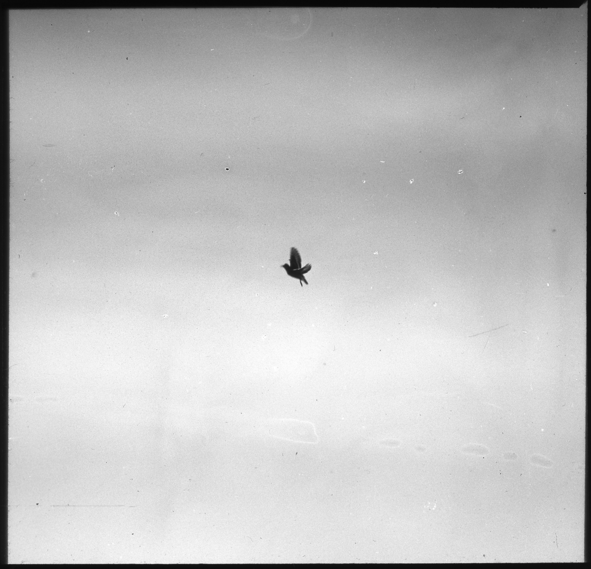 'Bildtext: ''Mosnäppa flyger.'' Vingarna lyftade uppåt, sedd på avstånd. :: :: Ingår i serie med fotonr. 5158:1-10 numrerade med bildnr 129-138. Se även hela fotoserien med fotonr. 5155-5174.'
