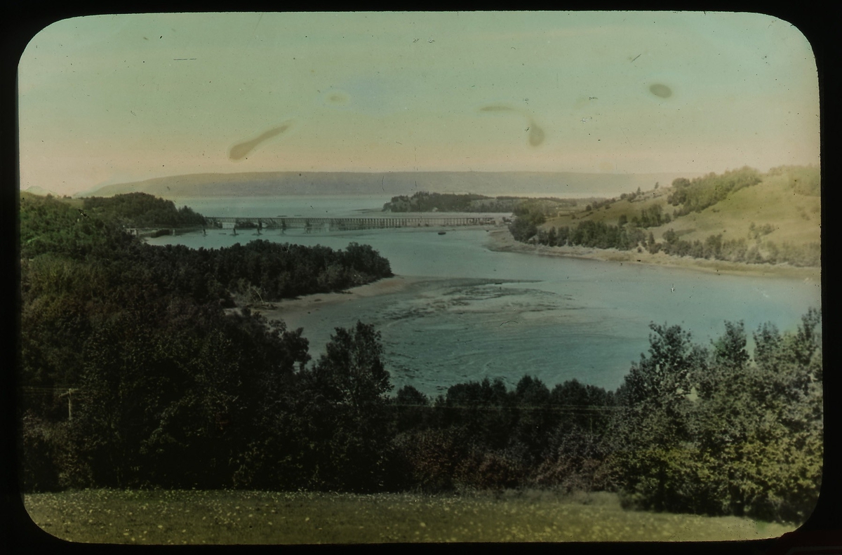 'Vy med bro över vatten :: :: Ingår i serie med fotonr. 5204:1-19. Se även hela fotonr. 5202-5218 med bilder från Frits Johansen.'
