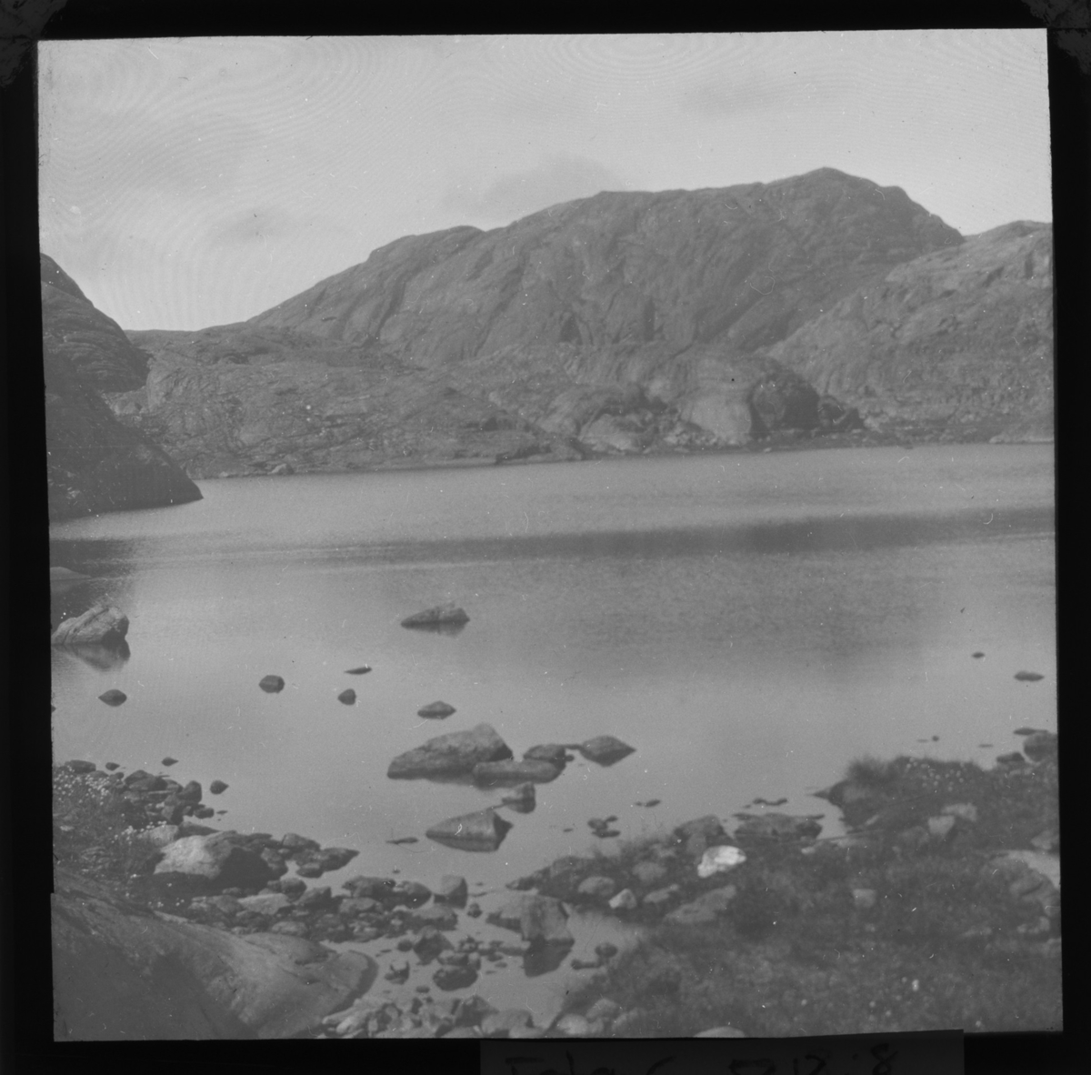 'Vy över ev. sjö med berg på motsatt sida. :: :: Ingår i serie med fotonr. 5212:1-8, se även fotonr. 5217:1-98. Se även hela fotonr. 5202-5218 med bilder från Frits Johansen.'
