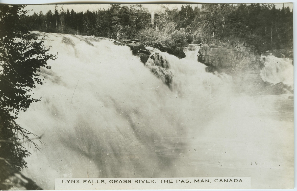 'Lynx falls, Grass river, The Pas. Man, Canada. :: :: Ingår i serie Fotonr. 5218:1-12. Se även hela fotonr. 5202-5218 med bilder från Frits Johansen.'