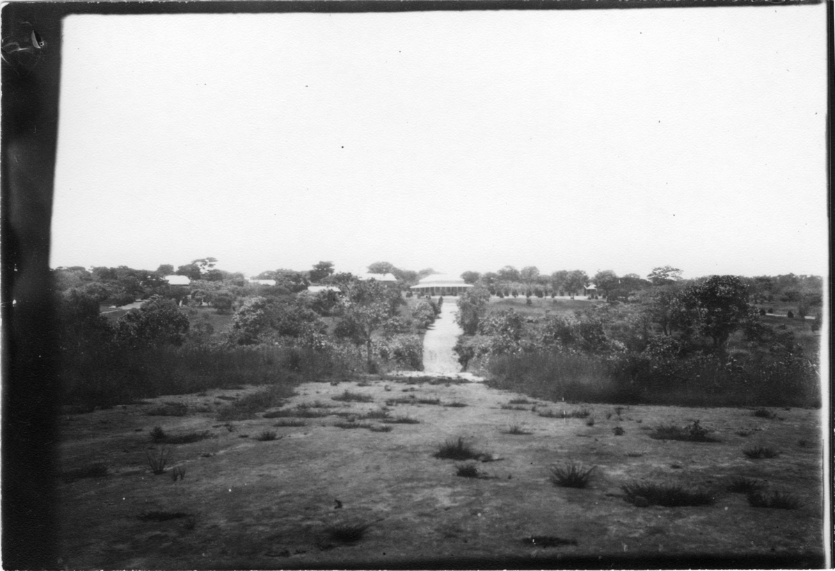'Diverse fotografier från bl.a. dåvarande Nordrhodesia, nu Zambia, tagna av Konsul Magnus Leijer. :: :: Vy över naturen kring ett antal byggander som är fotograferade på avsånd.'