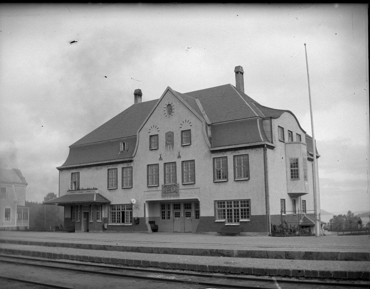 'Bildtext: ''Ed station.'' :: Vy med stationsbyggnaden med järnvägsspår i förgrunden. Samma bild som fotonr. 5230:9, men den bilden har ett annat årtal. :: :: Ingår i serie med fotonr. 5225:1-18. Se även fotonr. 5230:1-11.'