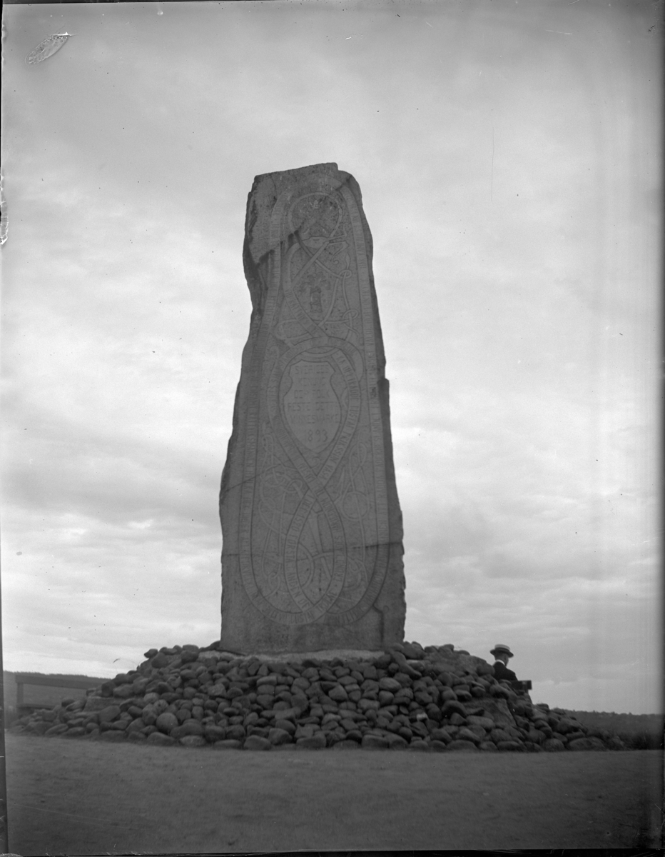 'Bildtext: ''Wasastenen, Rättvik.'' :: Vy med rest sten placerad på sockel av stenblock. Resta stenen är en runten. :: :: Ingår i serie med fotonr. 5232:1-8. Se även fotonr. 5223:1-13, 5231:1-12 och 5234:1-12.'