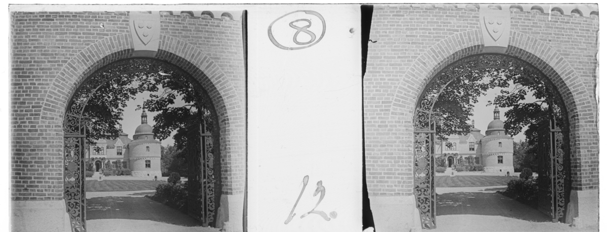 'Bildtext: ''Rockelstad trip, Rockelstad slott, through main gate.'' :: Del av Rockelstad slott synligt genom huvudentrén, valv. :: :: Ingår i serie med fotonr. 5248:1-20, se även hela serien med fotonr. 5237-5267.'