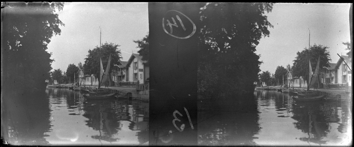 'Bildtext: ''Trip to Båtsvik: Trosa harbour.'' :: Vy med segelbåtar liggande i hamnen, hus på land. :: :: Ingår i serie med fotonr. 5249:1-20, se även hela serien med fotonr. 5237-5267.'