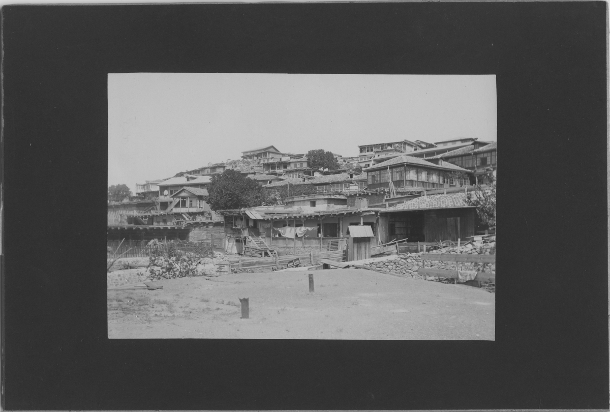 'Småhus på sluttning, trappor, staket, veranda. :: :: Se serie med fotonr. 5273:1-17. Serie fotonr 5269-5292, Stuxbergs resa till Kaukasien, 1897.'