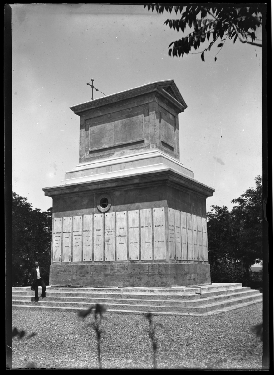 'Monoment med ett antal inskriptioner av namn. Invid står 1 man. :: :: Ingår i serie med fotonr. 5282:1-15. Se även fotonr. 5269-5292 med bilder från Stuxbergs resa till Kaukasien.'