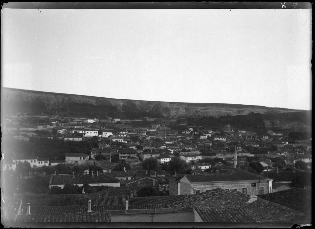 'Vy över hustak, vy över del av stad liggande intill bergvägg. :: :: Ingår i serie med fotonr. 5283:1-19. Se även fotonr. 5269-5292 med bilder från Stuxbergs resa till Kaukasien.'