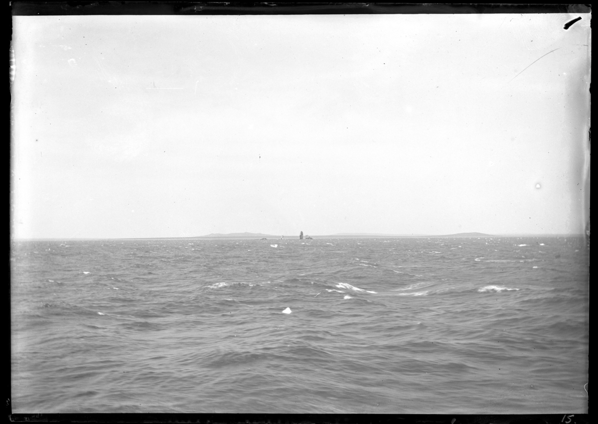 'Vy över öppet hav med vågor och på avstånd ev. uppstickande bergformationer. :: :: Ingår i serie med fotonr. 5287:1-22. Se även fotonr. 5269-5292 med bilder från Stuxbergs resa till Kaukasien.'