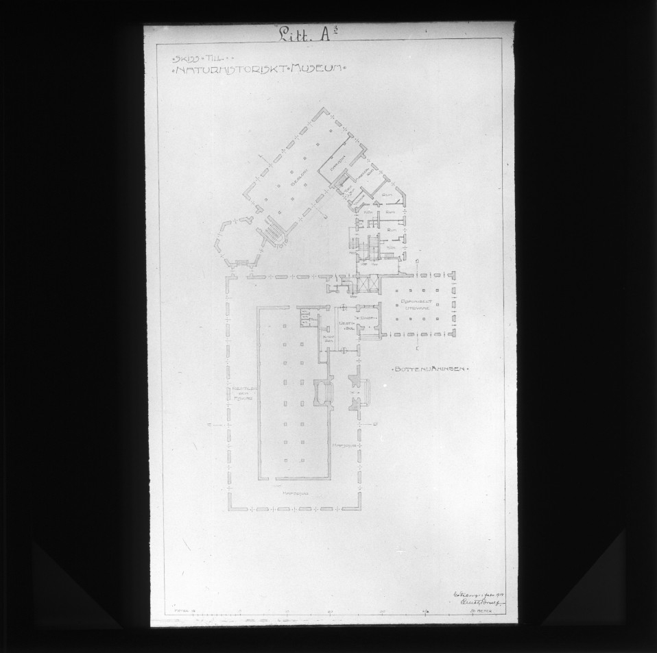 'Byggnad. :: ''Svenska museer'' :: Diaduplikat av bilder i fotoarkivet. :: :: ''Skiss Till Naturhistoriskt Museum, Bottenvåningen''.'