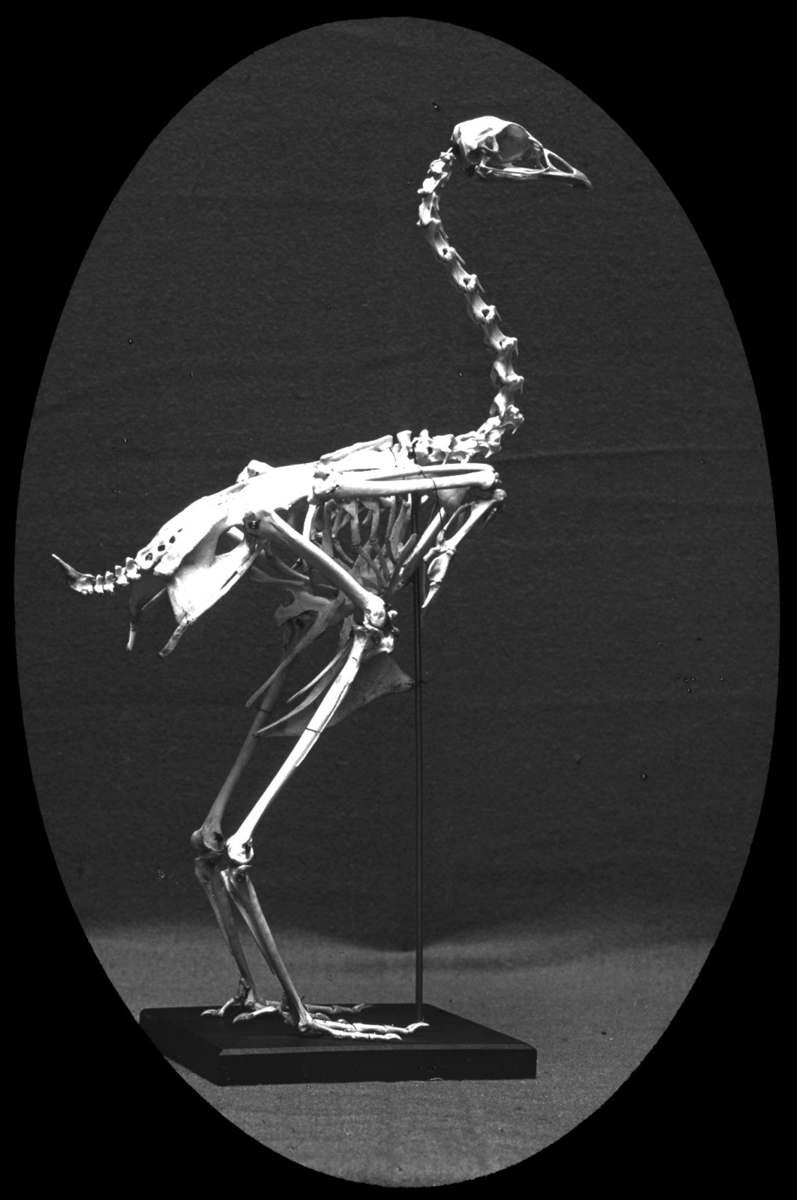 'Monterat skelett av kalkon, sett från sidan. :: :: Från Dr. Schlüter & Mass, Halle a S naturvetens. Läromedel. Numrerad I.B. Nr.8. :: :: Ingår i serie med fotonr. 5374:1-30. Se även hela fotoserien 5374-5376.'