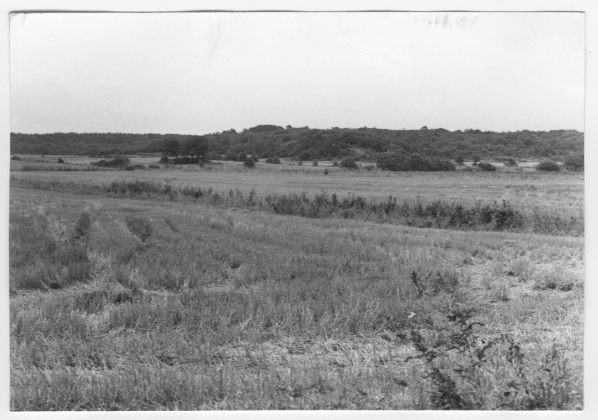 'Bildtext: ''Sedimentyta. Rikning 62.'' Vy med öppna fält, åkrar med ev. dike och enstaka träd och buskar. I bakgrunden högre parti med trädvegetation. :: :: Ingår i serie med fotonr. 6970:1-1125, dokumentation av Hisingens naturgeografi, visande landskapsformerna i stora drag och gjord inför exploateringen av området. Platserna för fotograferingen finns utsatta på karta i skala 1:4000 som finns på Göteborgs Naturhistoriska musem. Fotoriktningen mättes med kompass i gammalgrader.'