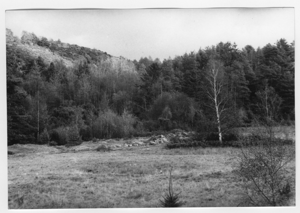 'Bildtext: ''Sedimentficka. Riktning 82.'' :: :: Ingår i serie med fotonr. 6970:1-1125, dokumentation av Hisingens naturgeografi, visande landskapsformerna i stora drag och gjord inför exploateringen av området. Platserna för fotograferingen finns utsatta på karta i skala 1:4000 som finns på Göteborgs Naturhistoriska musem. Fotoriktningen mättes med kompass i gammalgrader.'