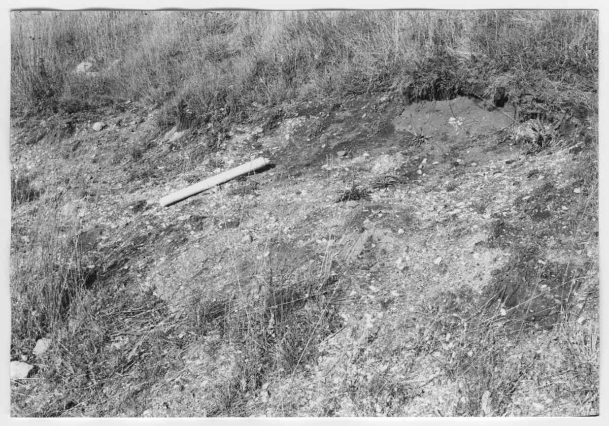 'Bildtext: ''Skalgrus.'' :: :: Ingår i serie med fotonr. 6970:1-1125, dokumentation av Hisingens naturgeografi, visande landskapsformerna i stora drag och gjord inför exploateringen av området. Platserna för fotograferingen finns utsatta på karta i skala 1:4000 som finns på Göteborgs Naturhistoriska musem. Fotoriktningen mättes med kompass i gammalgrader.'
