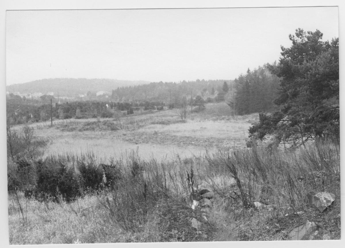 'Bildtext: ''Sedimentyta. Riktning 200.'' :: :: Ingår i serie med fotonr. 6970:1-1125, dokumentation av Hisingens naturgeografi, visande landskapsformerna i stora drag och gjord inför exploateringen av området. Platserna för fotograferingen finns utsatta på karta i skala 1:4000 som finns på Göteborgs Naturhistoriska musem. Fotoriktningen mättes med kompass i gammalgrader.'