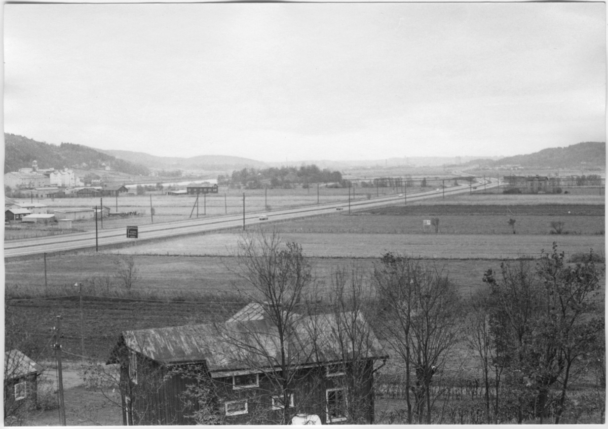 'Bildtext: ''Götaälvdalen. Riktning 243.'' :: :: Ingår i serie med fotonr. 6970:1-1125, dokumentation av Hisingens naturgeografi, visande landskapsformerna i stora drag och gjord inför exploateringen av området. Platserna för fotograferingen finns utsatta på karta i skala 1:4000 som finns på Göteborgs Naturhistoriska musem. Fotoriktningen mättes med kompass i gammalgrader.'