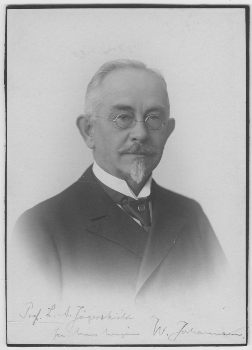 Porträtt av W. Johansen/Johannsen?.Text: Till professor Leonard Axel Jägerskiöld från hans hängivne W. Johansen/Johannsen.