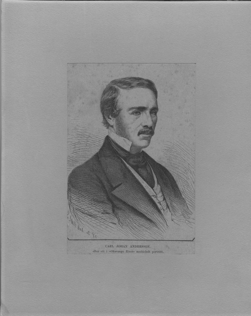 'Porträtt av Carl Johan Andersson (1827-1867), efter porträtt i ''Okavango River utgiven 1861''. :: :: Ingår i serie med fotonr. 6975:1-31.'