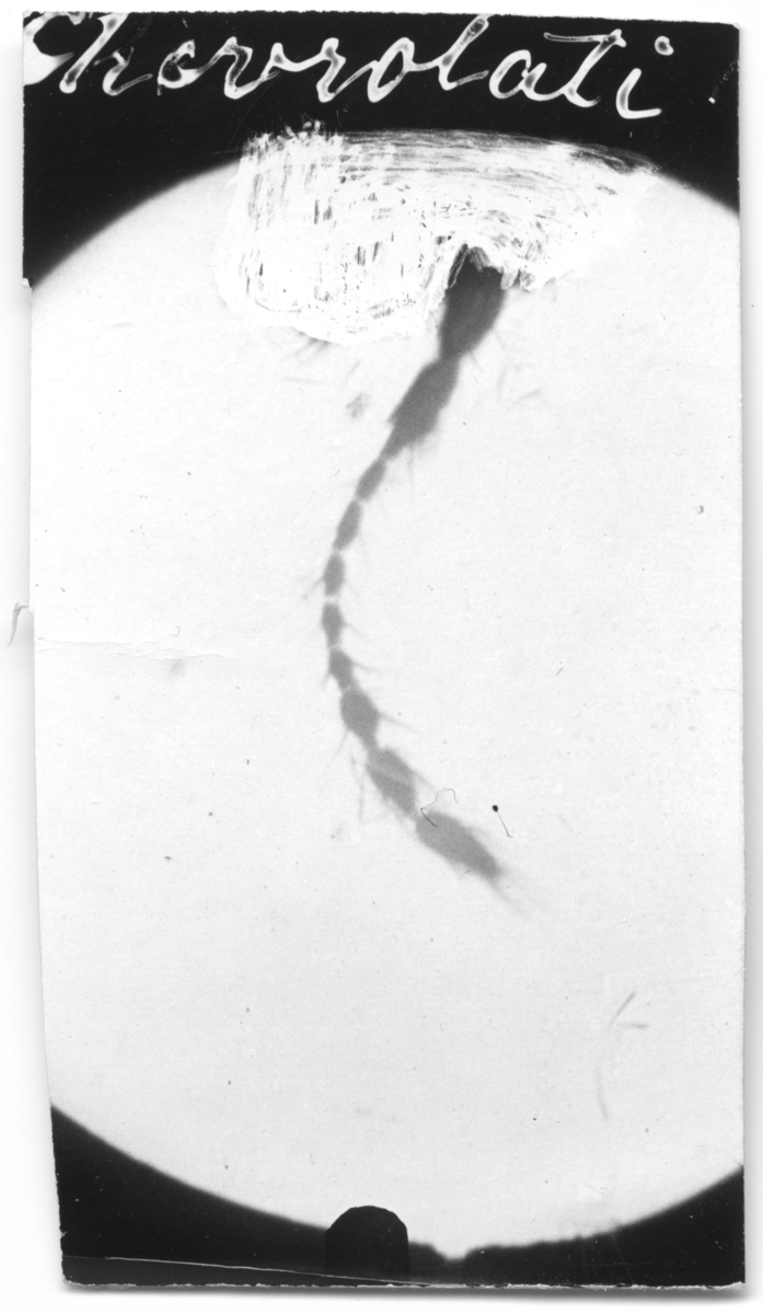 'På baksidan står: ''chovrolati.'' :: :: Bilden är inskannad och sedan spegelvänd för att texten ska gå att läsa.'''