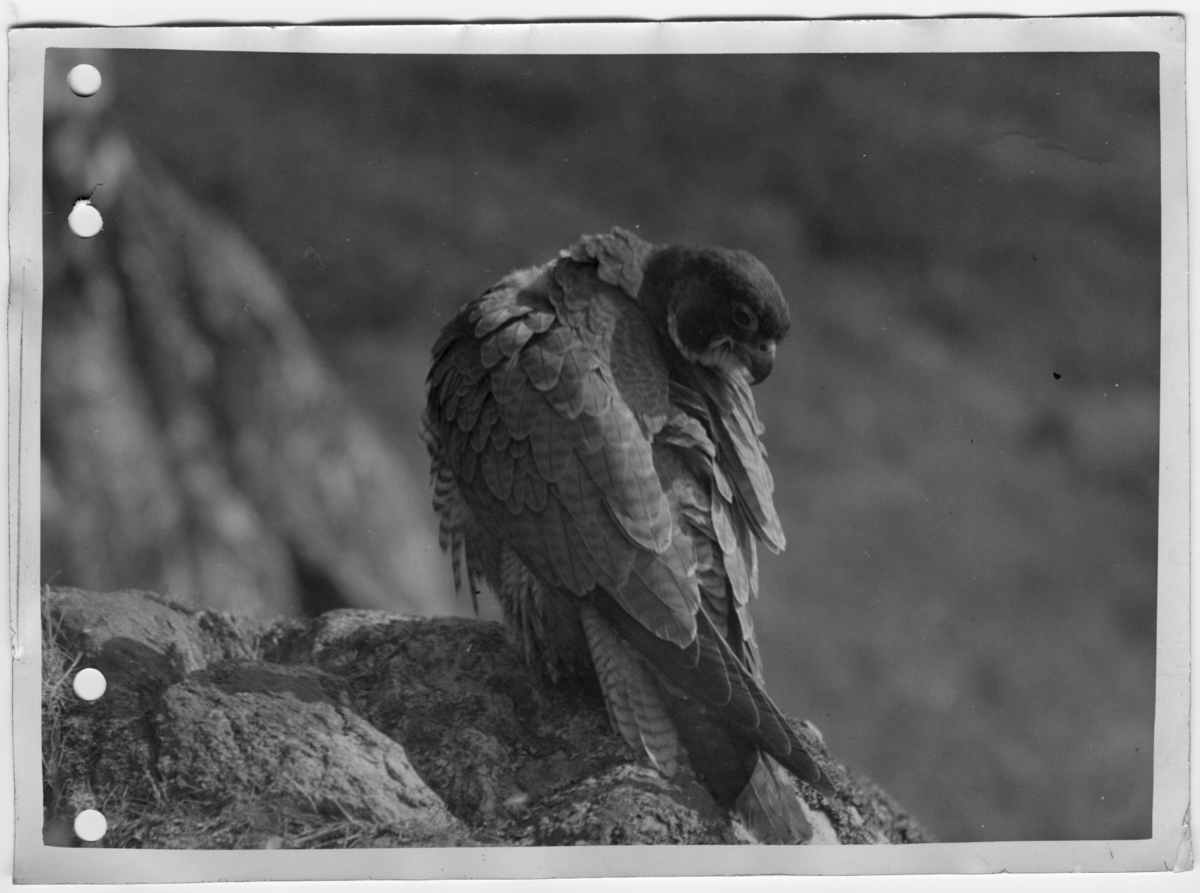 '1 rovfågel på klippa. :: :: Ingår i serie med fotonr. 7035:1-12.'