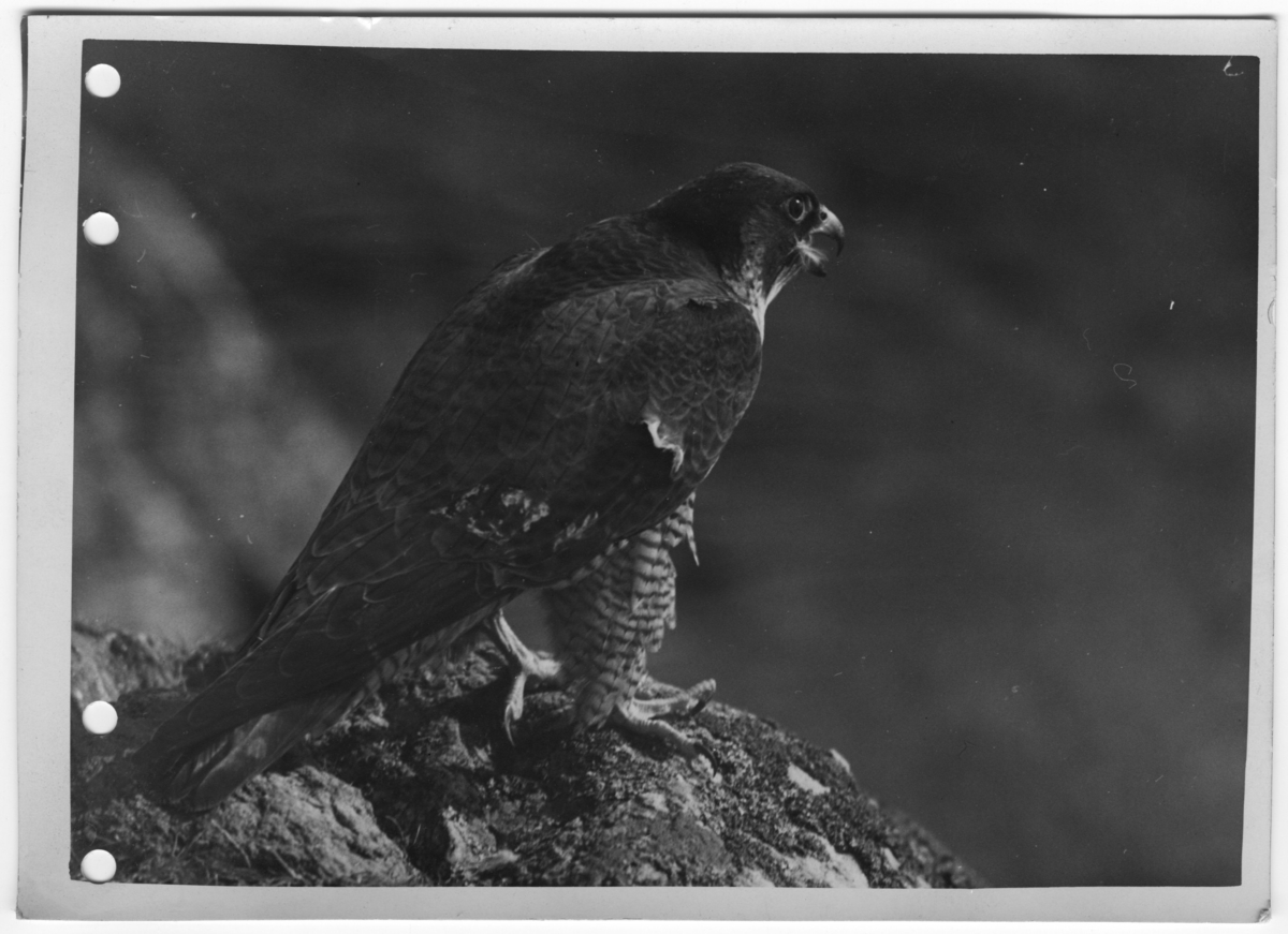 '1 rovfågel på klippa. :: :: Ingår i serie med fotonr. 7035:1-12.'