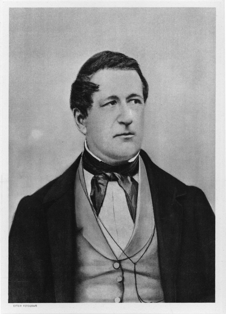 'Porträtt av Michael Sars (1805-1869), efter fotografi. :: :: Ingår i serie med fotonr. 7044:1-15 med porträtt.'