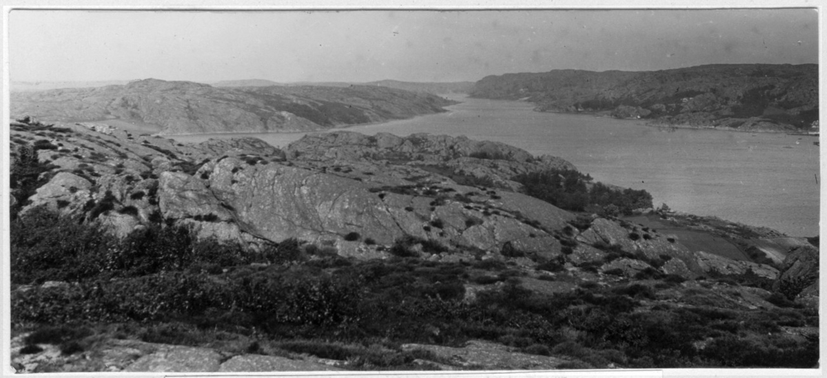 'Bildtext: ''Boksvikskilen från lyrön. Tegneby socken. Nösund till höger.'' Vy över hav och berghällar. :: :: Fotonr. 7046:1-84 indelade som ''Landskapsbilder från Göteborgs- och Bohus län.'' Ingår i serie med fotonr. 7046:1-383, 7047:1-33 och 7048:1-67 med bilder från Länsjägmästare John Lindners bildarkiv.'