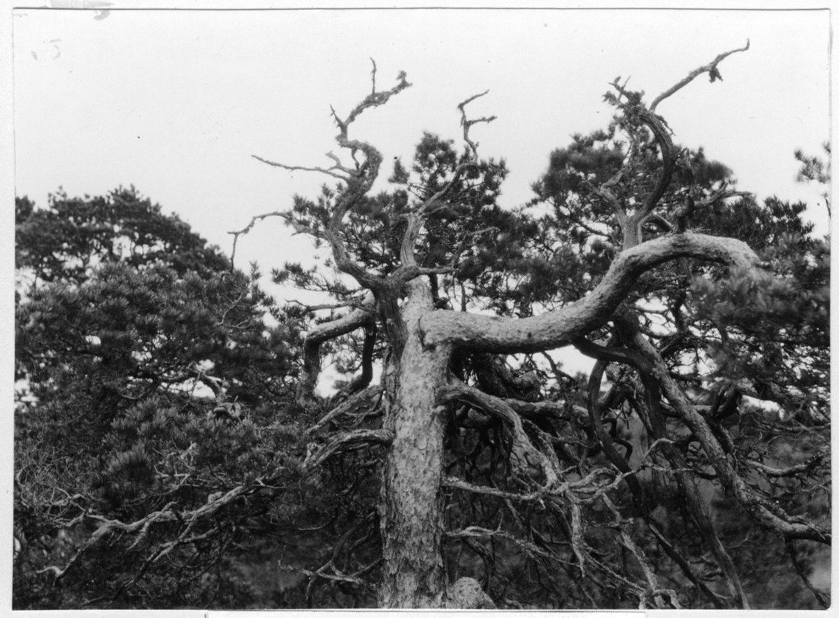 'Bildtext: ''Tall på berg.'' Närbild på talltopp med kala grenar. Se även fotonr. 7046:121. :: :: Fotonr. 7046:119-185 indelade som ''Märkvärdiga träd i Göteborgs län och Bohus län''. Ingår i serie med fotonr. 7046:1-383, 7047:1-33 och 7048:1-67 med bilder från Länsjägmästare John Lindners bildarkiv.'