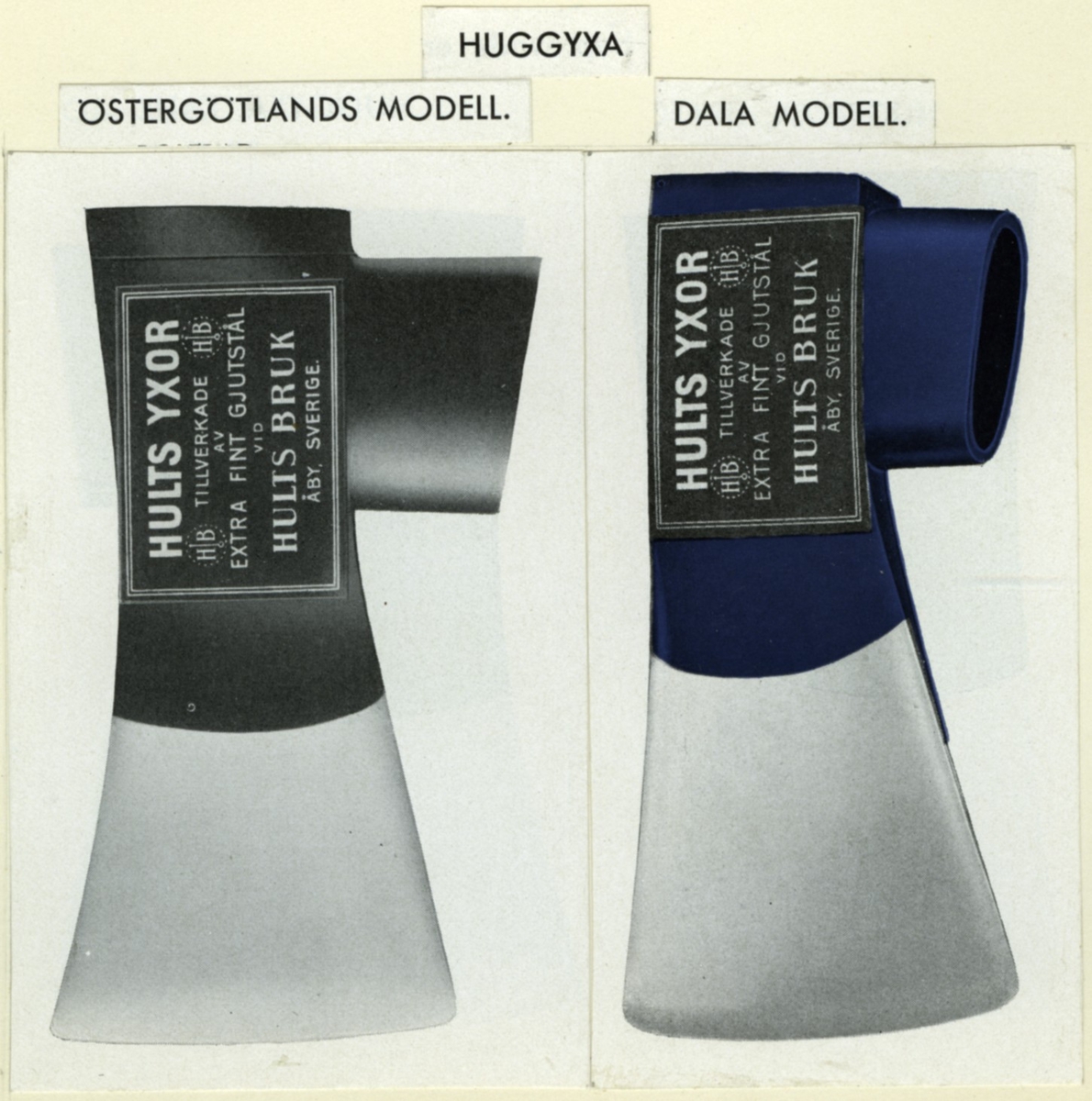 'Bildtext: ''Huggyxa: Östergötlands modell och Dala modell.'' :: :: Fotonr. 7046:335-353 indelade som ''Skogsavverkning och virkestransport.'' Ingår i serie med fotonr. 7046:1-383, 7047:1-33 och 7048:1-67 med bilder från Länsjägmästare John Lindners bildarkiv.'