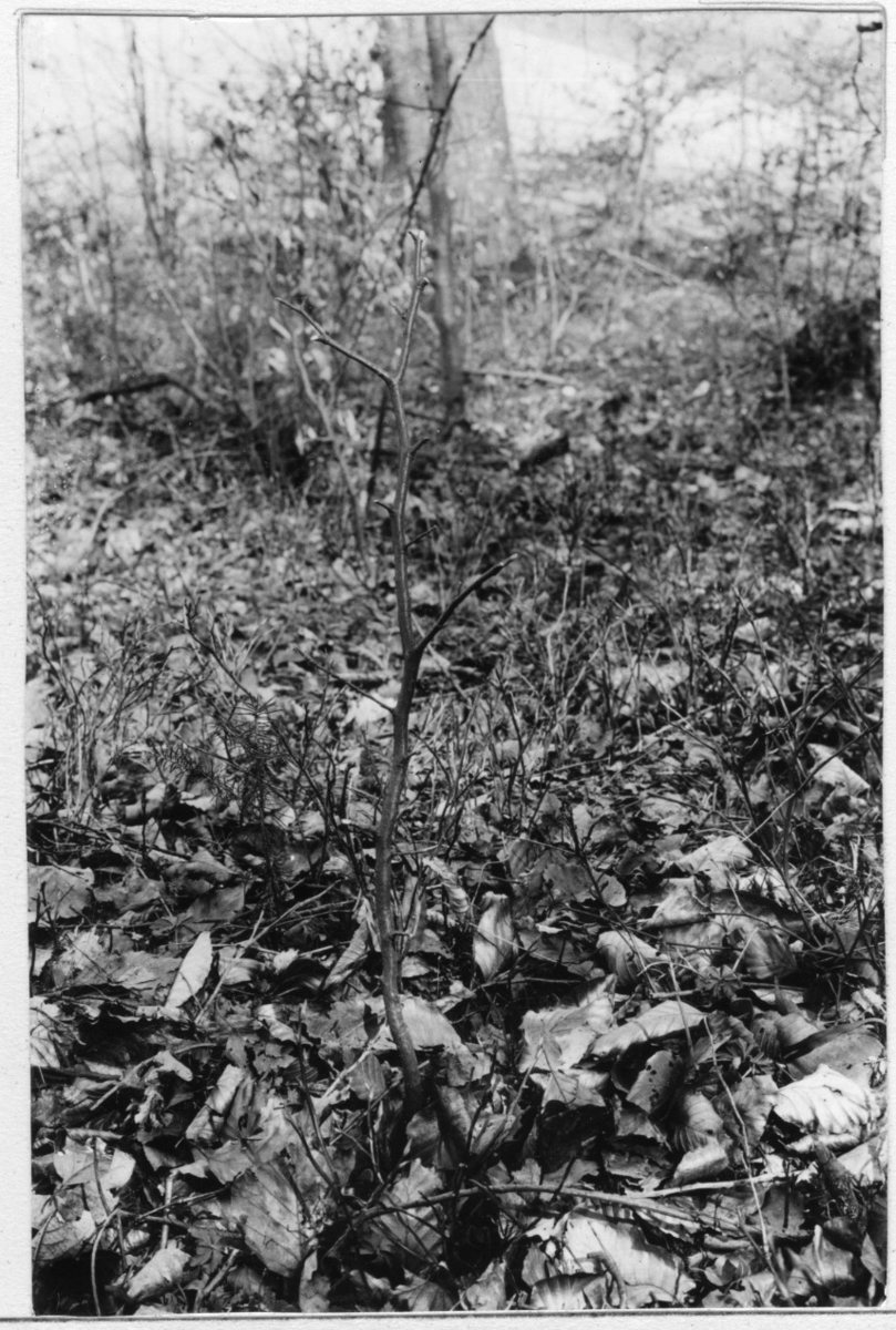 'Bildtext: ''Av hare biten bokplanta.'' Närbild. :: :: Fotonr. 7048:1-26 indelad under rubriken ''Däggdjur, Människor''. Ingår i serie med fotonr. 7046:1-383, 7047:1-33 och 7048:1-67 med bilder från Länsjägmästare John Lindners bildarkiv.'
