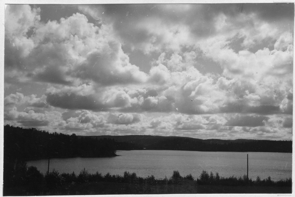 'Bildtext: ''Molnig himmel över Ivarsbosjön. Cumulusmoln'' Vy över sjö med omgivande skog. :: :: Fotonr. 7048:27-37 indelad under rubriken ''Naturstudier''. Ingår i serie med fotonr. 7046:1-383, 7047:1-33 och 7048:1-67 med bilder från Länsjägmästare John Lindners bildarkiv.'